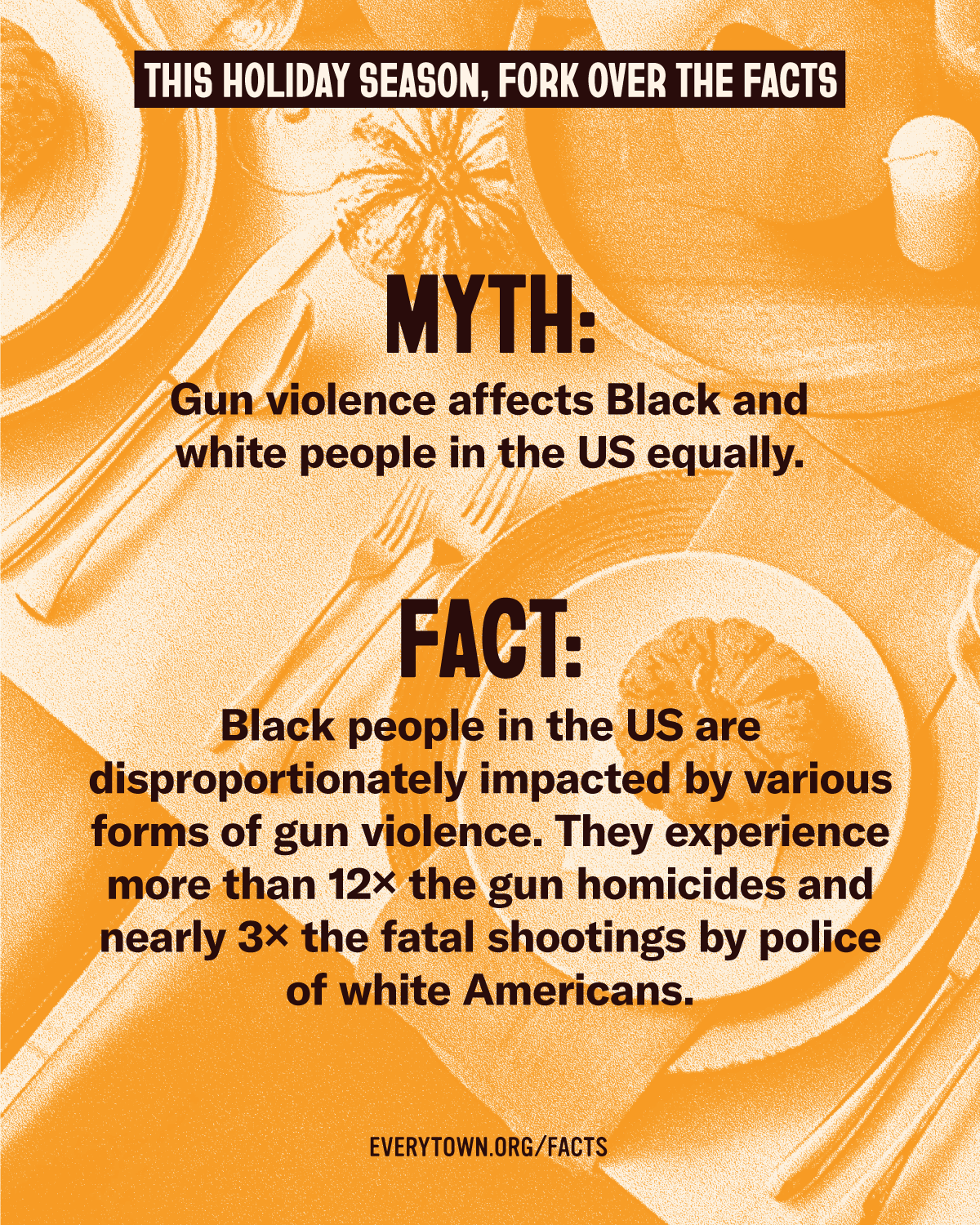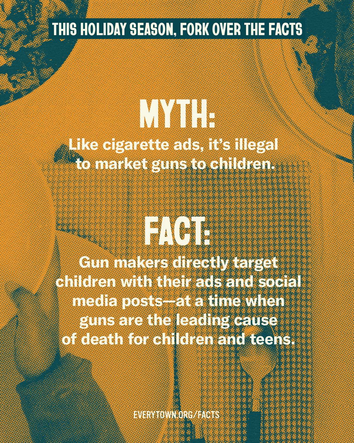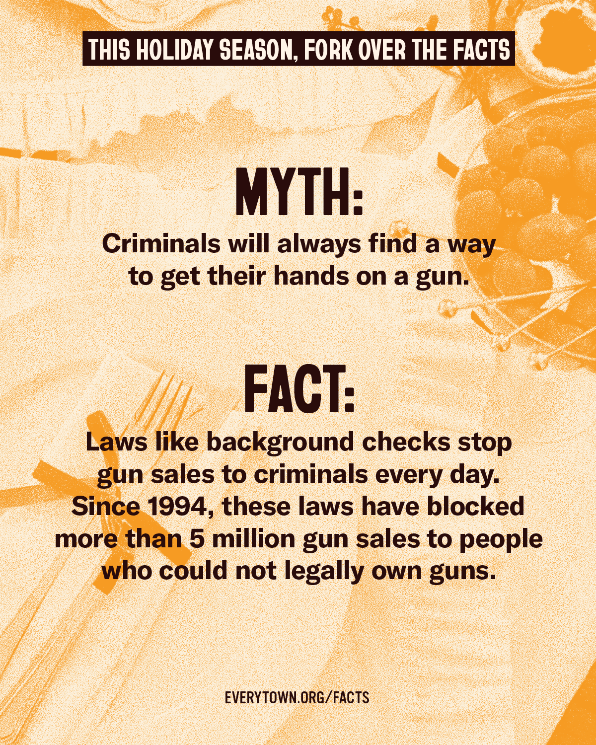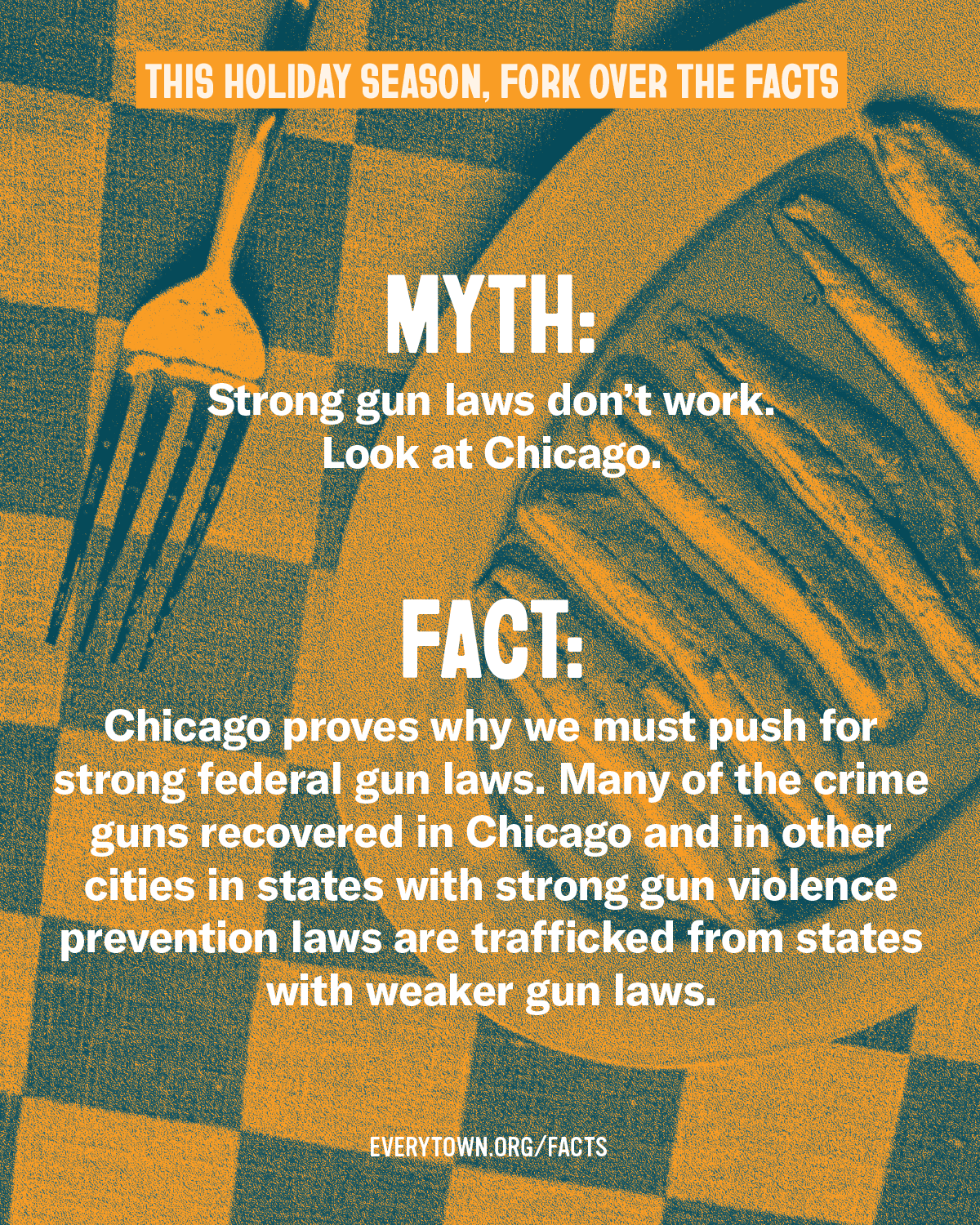 Every day, 125 Americans are killed with guns, and more than 200 are shot and wounded. There are a lot of widespread myths and conflicting information about guns, gun violence, and gun safety laws in America. To set the record straight, we’ve developed a series of graphics to help you “fork over the facts” and dispel some of the most prominent myths about gun violence.