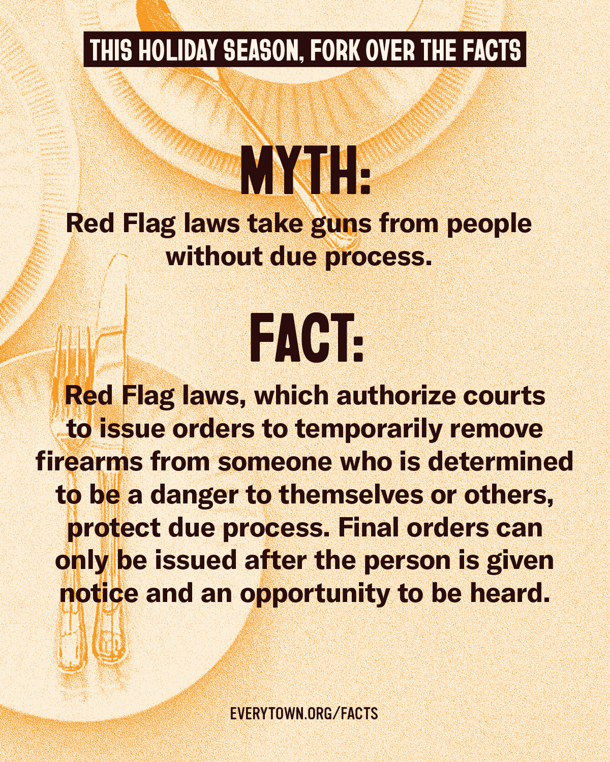 Red Flag laws, which authorize courts to issue orders to temporarily remove firearms from someone who is determined to be a danger to themselves or others, protect due process. Final orders can only be issued after the person is given notice and an opportunity to be heard.